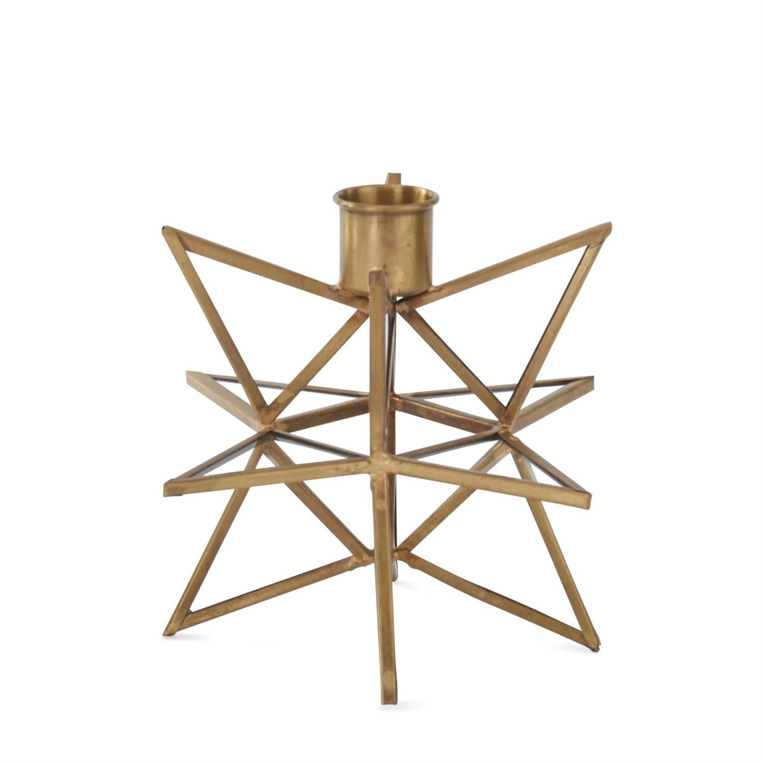 3-Dimensional Gold Metal & Glass Star Taper Candleholder - 6"