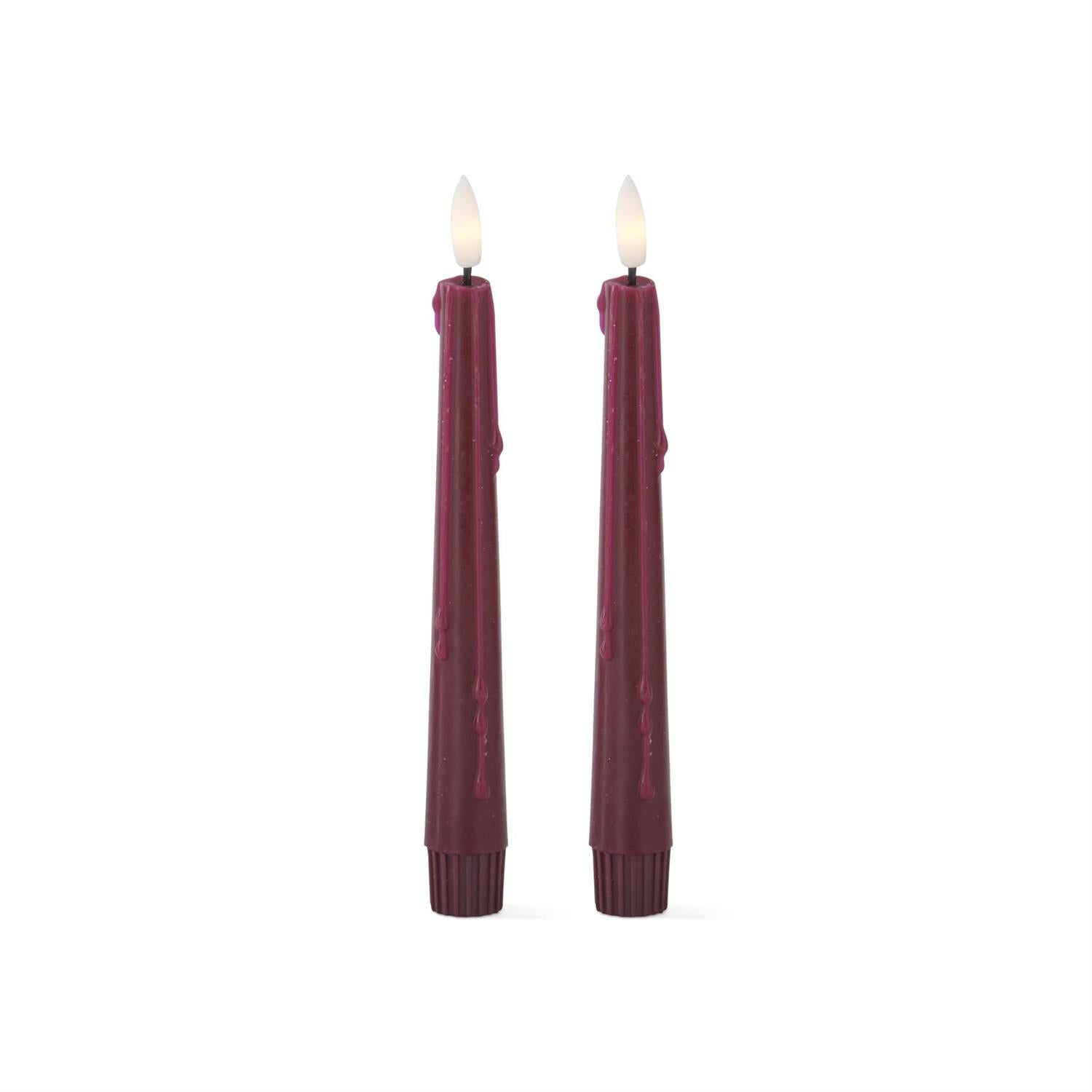 8" Burgundy LED Drip Taper Candles with Timer - 2 pk