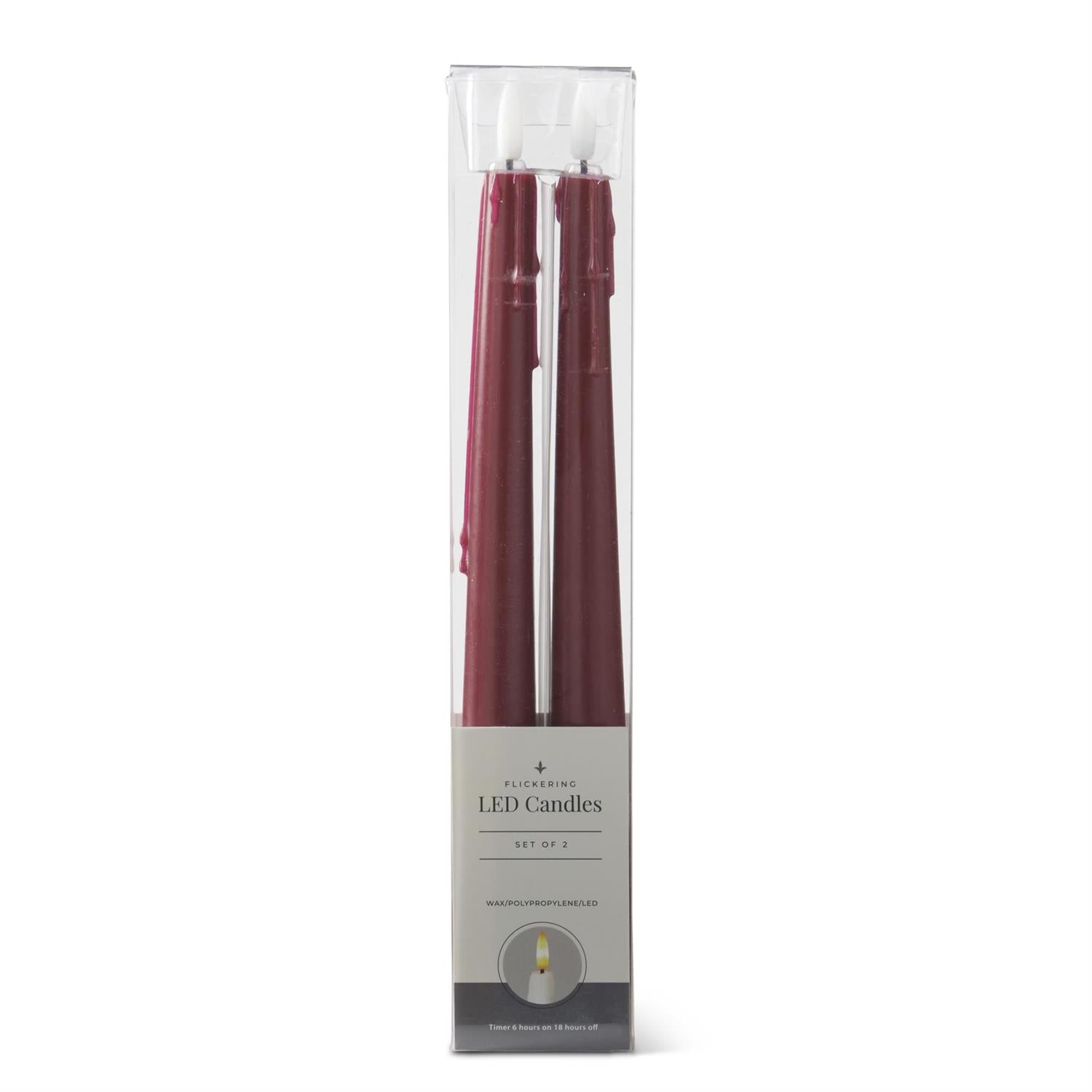 Burgundy LED Drip Taper Candles W/Timer- Set of 2, 11.5"