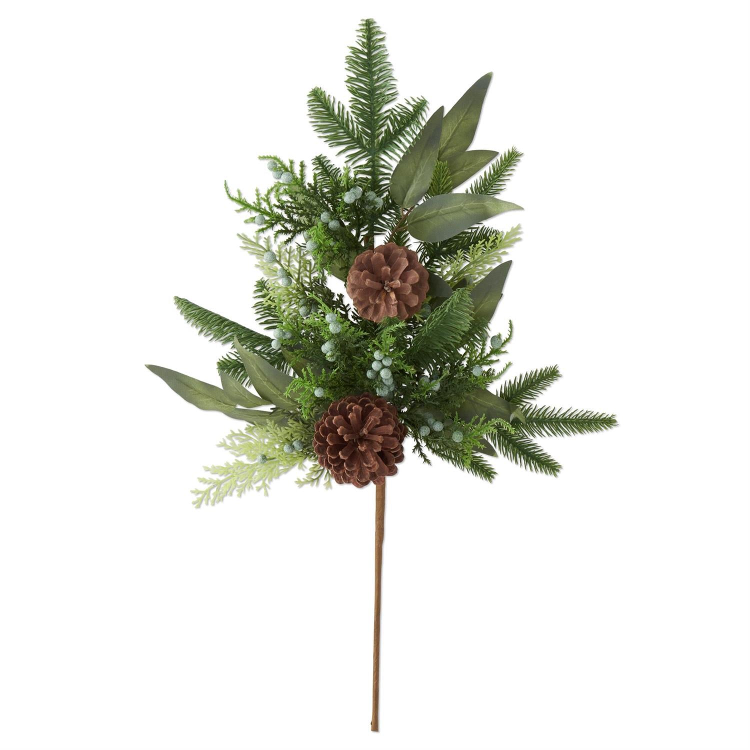 Bring natural elegance into your home with this stunning 26" Mixed Pine Stem featuring lush eucalyptus and rustic pinecones. Perfect for seasonal arrangements, mantelpiece displays, or creating an inviting focal point in any room, this faux stem captures the authentic beauty of fresh greenery without the maintenance. The lifelike texture and earthy tones blend seamlessly with your existing décor, while the generous length offers endless styling possibilities. Ideal for holiday arrangements.
