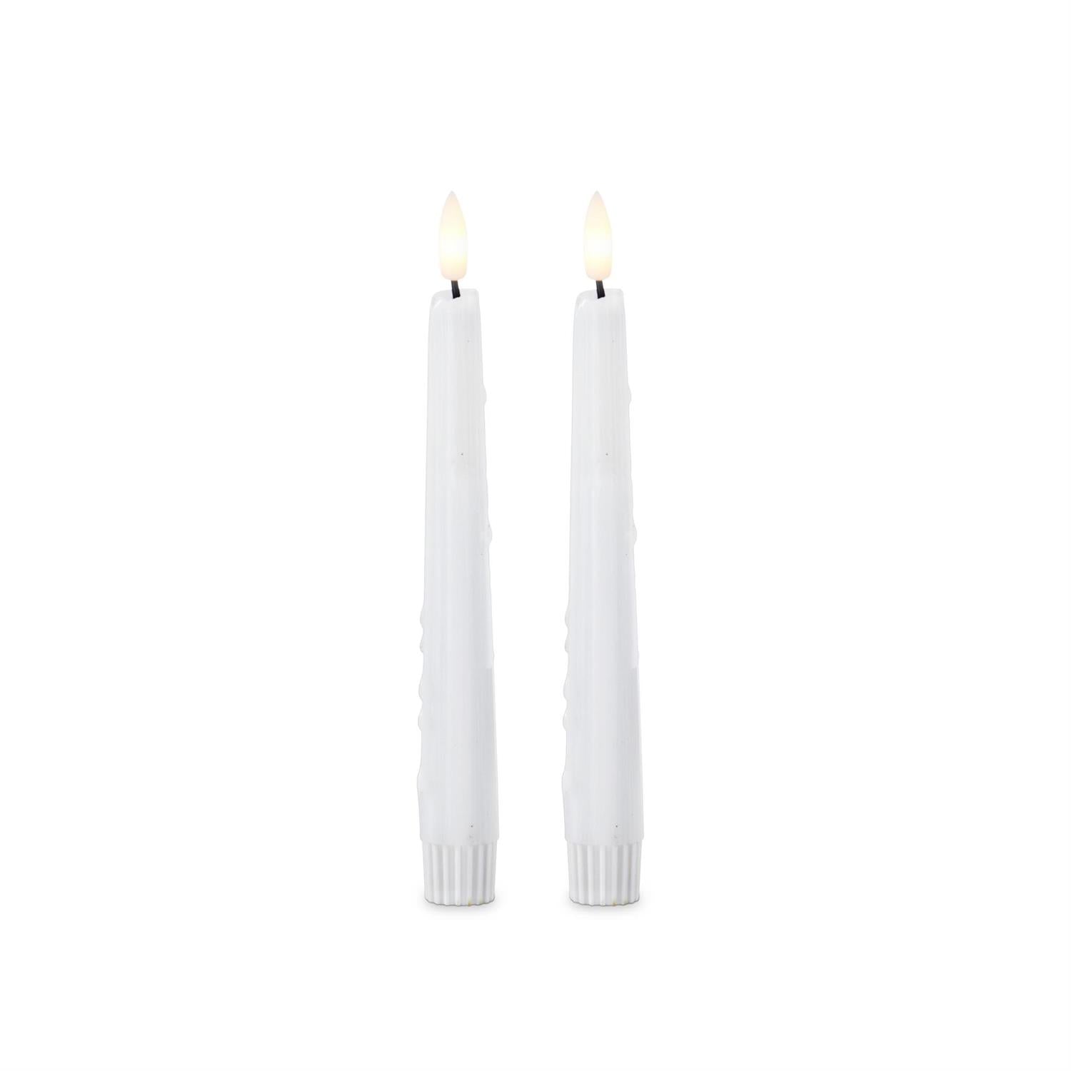 White LED Drip Taper Candles W/Timer - Set of 2, 8"