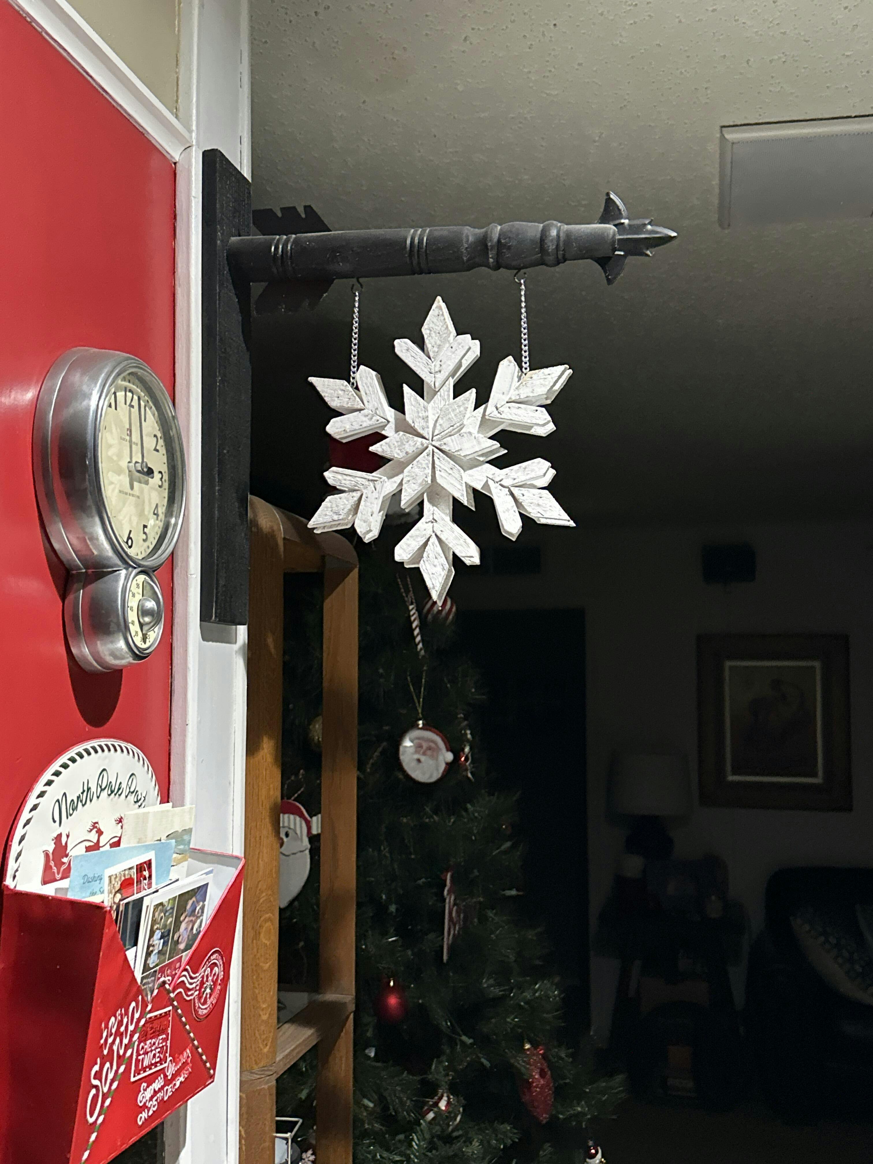 Bring winter charm to any space with this stunning whitewashed wood snowflake. Featuring double-sided design, it's perfect for displaying from multiple angles—hang it in a window, on a porch, or as a seasonal accent piece. The crisp white finish complements any décor style, from farmhouse to modern. At 11 inches, it makes an eye-catching statement without overwhelming your space. Ideal for holiday decorating or year-round winter-inspired ambiance.